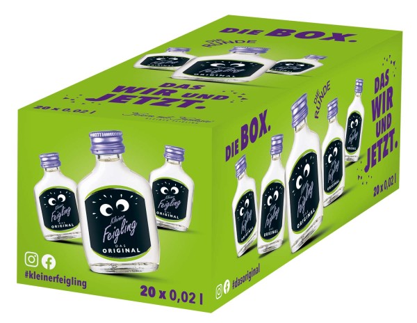 ¡Uno de los licores de fiesta más conocidos y populares desde hace muchos años! Despedidas de soltero, Día del Padre, fiestas de bomberos,Fiestas Patrias y fiestas de clubes son difíciles de imaginar sin Kleiner Feigling Original. El vodka más fino y el aroma afrutado de los higos forman la base de un sabor excepcionalmente bueno, en el que la dulzura soleada de los higos está dosificada en su justo punto. Con su clara pureza, Kleiner Feigling Original es sinónimo de cordialidad sin complicaciones y buen humor.